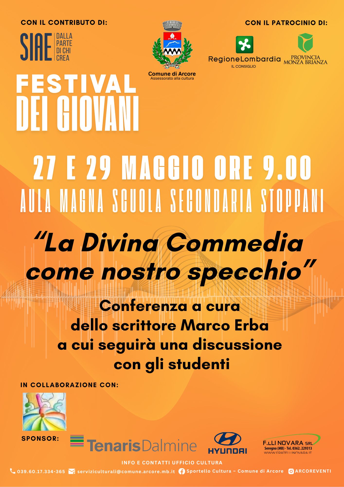 Martedì 27 e giovedì 29 maggio 2025, nell'ambito degli eventi organizzati per il Festival dei Giovani, i ragazzi delle classi terze della secondaria Stoppani incontreranno lo scrittore Marco Erba ai margini della sua conferenza La Divina Commedia come nostro specchio.
