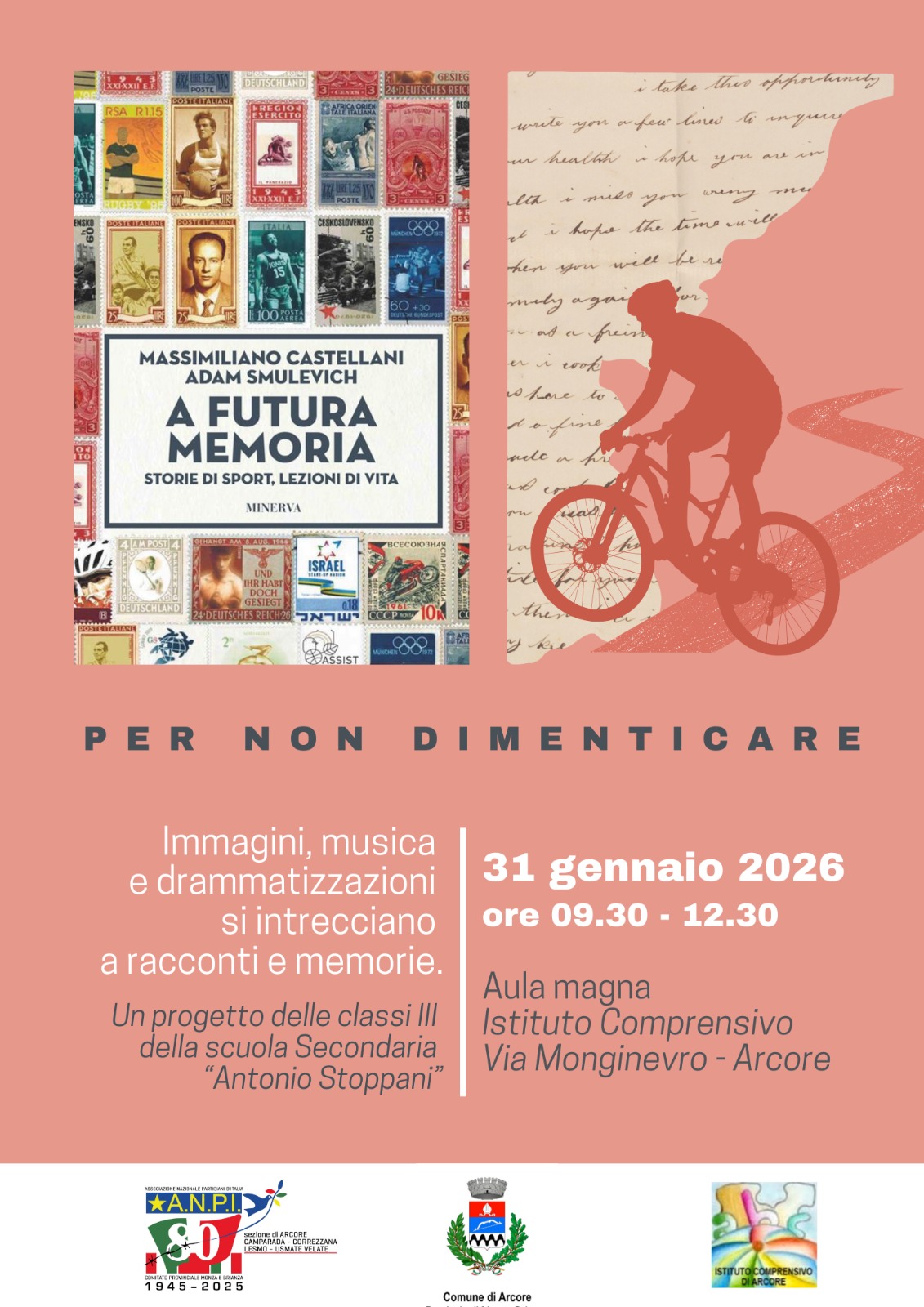 Gli studenti e i docenti delle classi terze della secondaria Stoppani presentano immagini, musica e drammatizzazione sul tema della Memoria, PER NON DIMENTICARE.