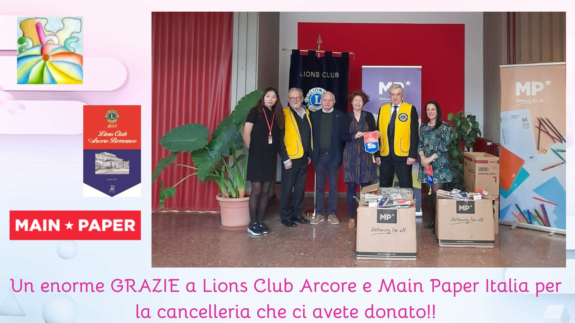 Ringraziamo il Lions Club Arcore e Main Paper Italia per la generosa donazione di cancelleria che hanno consegnato a scuola!!!