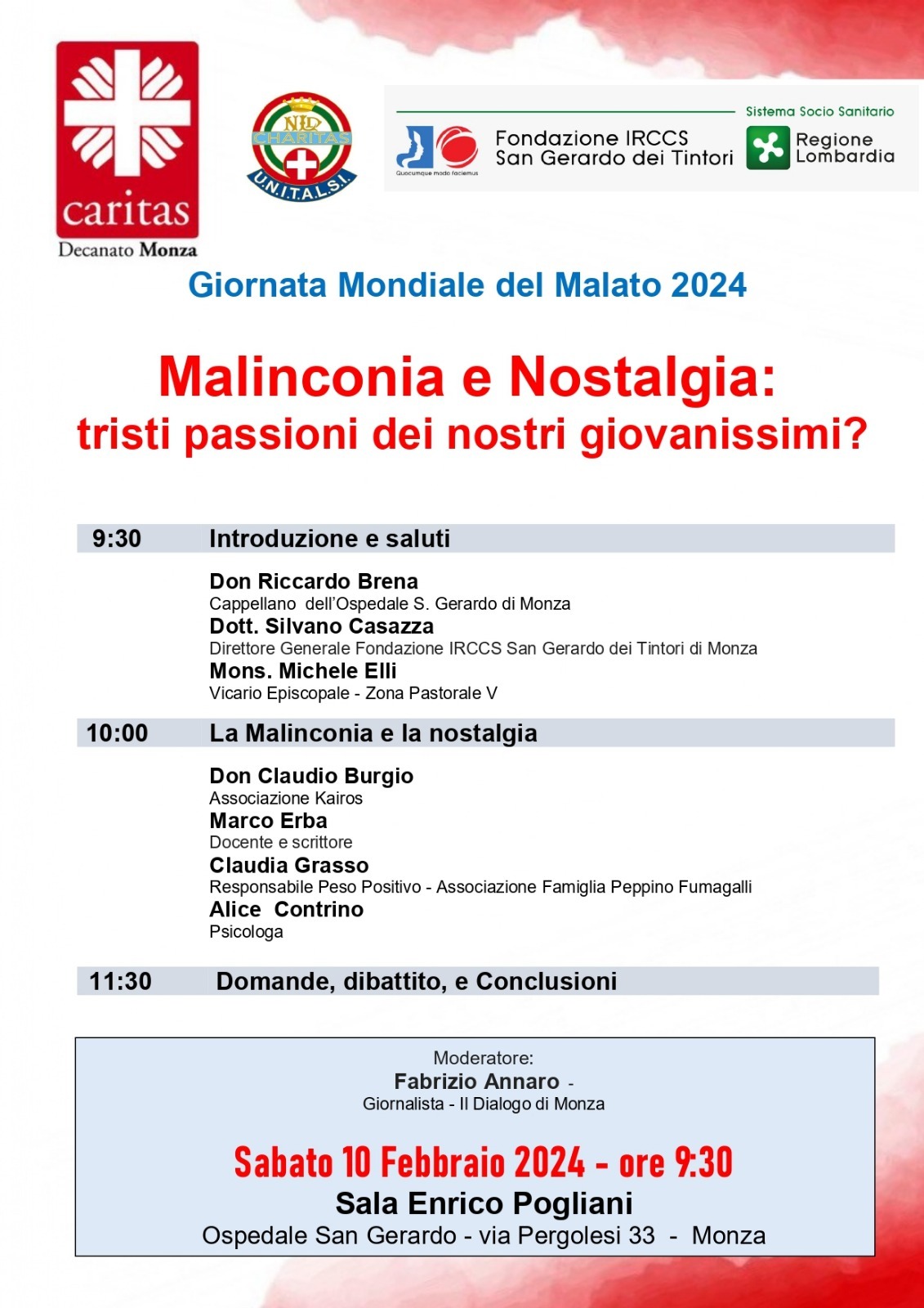 Pubblichiamo il volantino di un incontro organizzato da Caritas presso l'Ospdale San Gerando di Monza sabato 10 febbraio alle ore 9:30.
