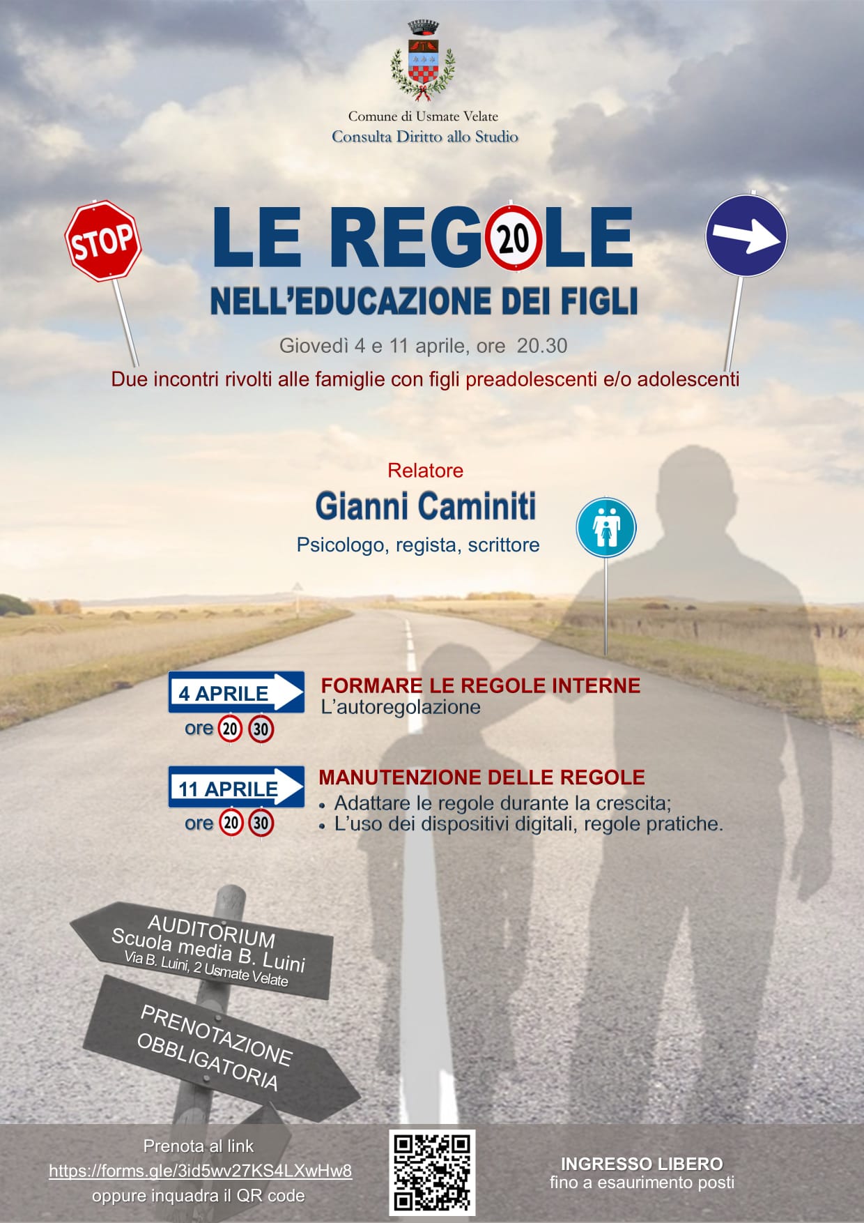 Pubblichiamo il volantino di presentazione di due incontri dedicati alle famiglie dal titolo Le regole nell'educazione dei figli che si terranno presso la scuola media Luini di Usmate Velate.