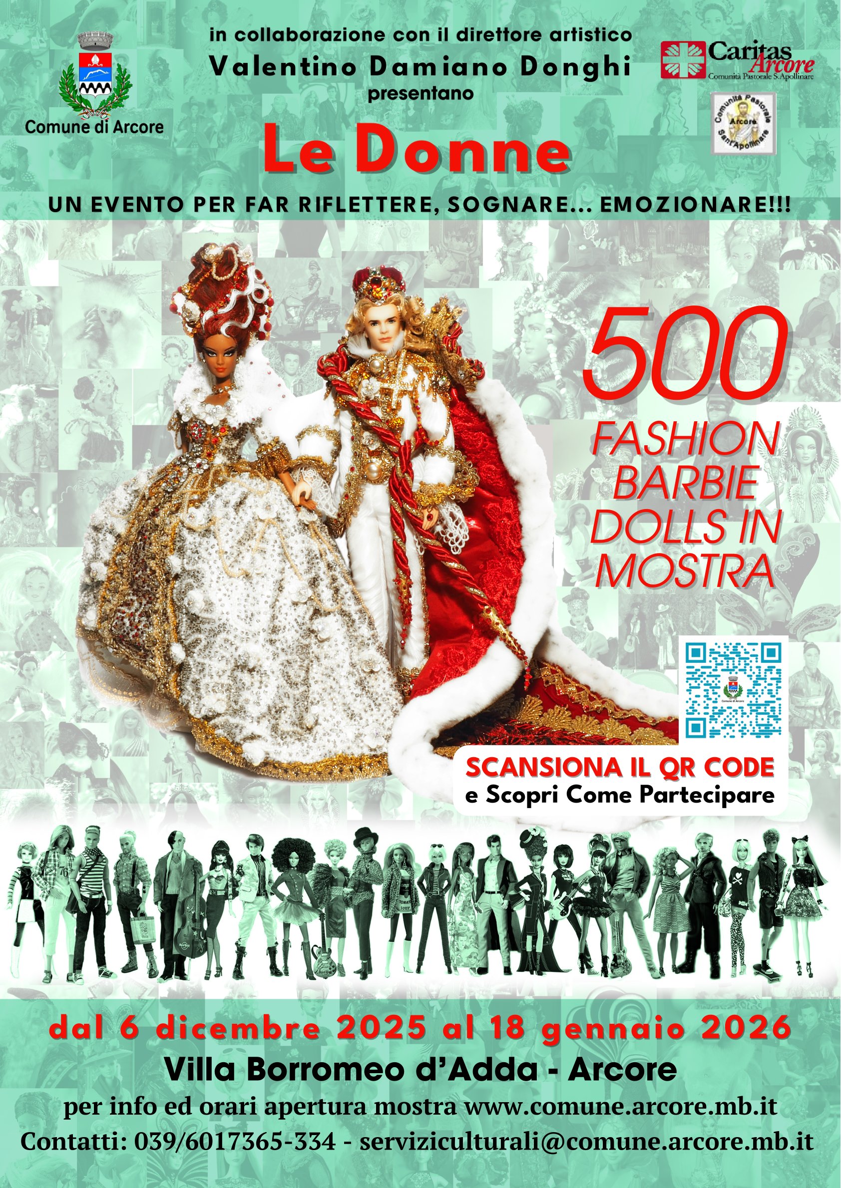 Il Comune di Arcore invita alunne ed alunni, studentesse e studenti e famiglie a visitare la mostra allestita presso la Villa Borromeo D'Adda dal titolo Le Donne - 500 Barbie Dolls in mostra, un evento per far riflettere, sognare... emozionare!!! .